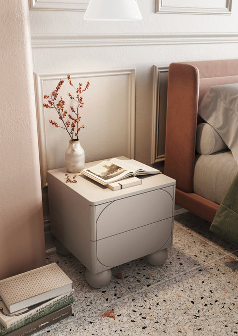 Noptiera Sonia II Round - Beige cu Picioare Rotunde