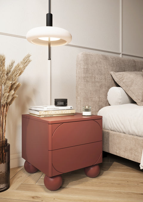 Noptiera Sonia II Round - Burgundy cu Picioare Rotunde