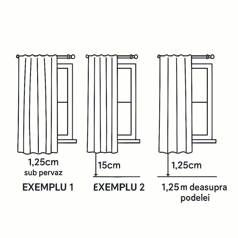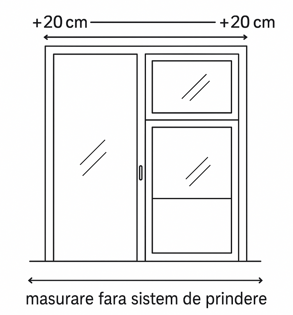 Dacă doriți ca perdeaua sau draperia să acopere doar zona ferestrei, măsurați lățimea acesteia de la o margine la cealaltă, luând în calcul și eventualele ornamente sau rame decorative. La dimensiunea rezultată adăugați 40 cm în total (20 cm pe fiecare parte). În situația în care draperia este formată din două piese, adăugați încă 2,5 cm pentru a permite o ușoară suprapunere a celor două bucăți, evitând astfel pătrunderea luminii.
